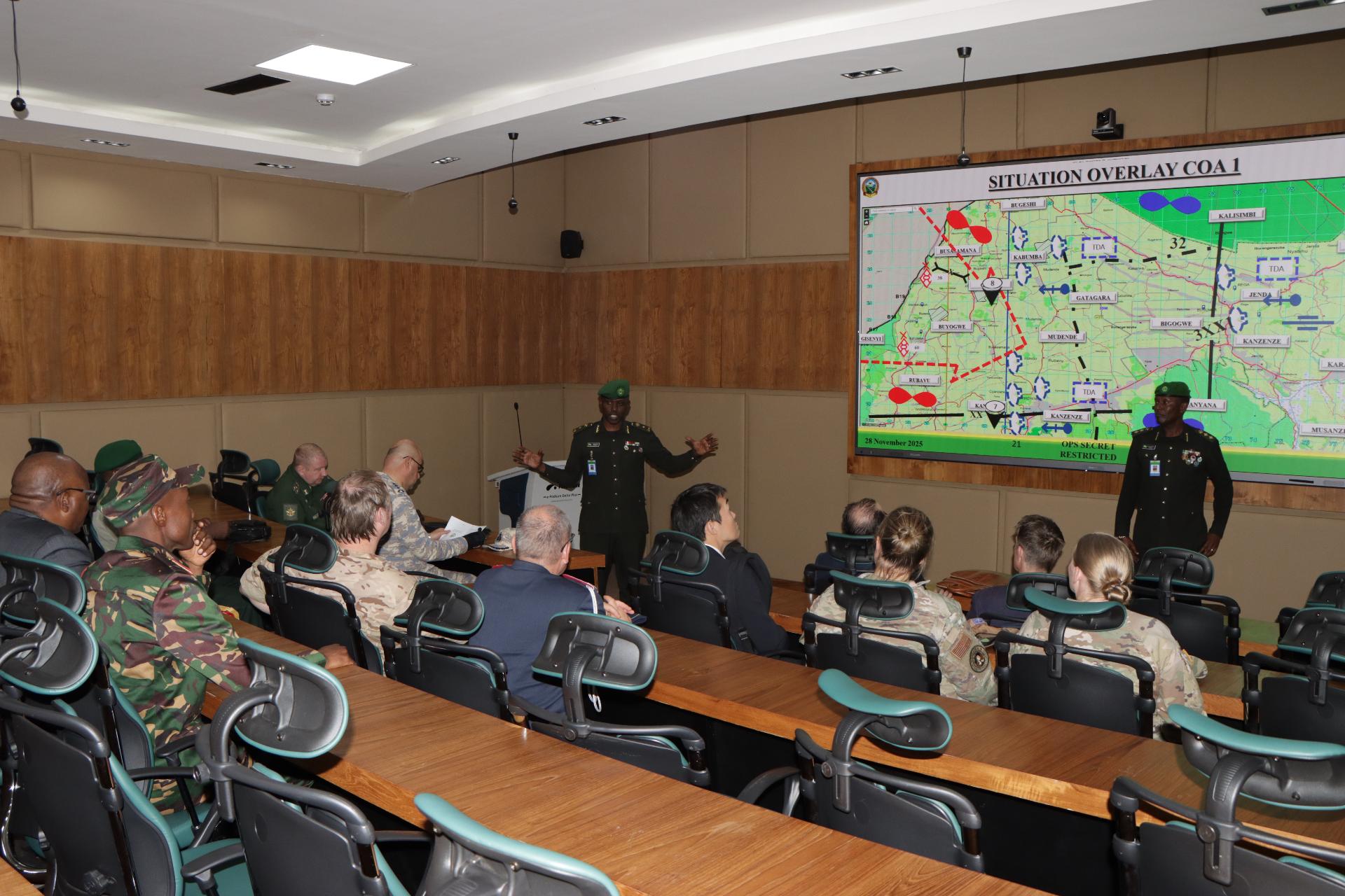 On 28 November 2025, The Defence Attachés (DAs) accredited to Rwanda visited the Rwanda Defence Force Command and Staff College, where they were welcomed by the Commandant, Brig Gen Andrew Nyamvumba, and faculty staff. The Commandant briefed them on the College’s mission to develop officers with the highest intellectual and professional standards in command and control, equipping them to respond effectively to the demands of today’s complex security environment.
