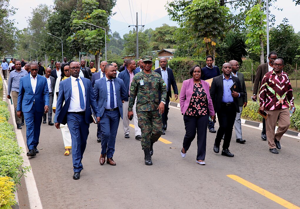 On 16 August 2023, a delegation from the University of Rwanda (UR) led by the Vice-Chancellor (VC) Dr. Kayihura Muganga Didas, visited Rwanda Defence Force Command and Staff College (RDFCSC) to benchmark on the achievements made by the College towards becoming a smart training institution. arrival at the College, the delegation of 40 people was welcomed by the College Deputy Commandant Col JC Ngendahimana who later briefed them on the college activities, emphasizing on the “Smart College” infrastructure development and progress. After the brief, the visitors toured the college premises and facilities.