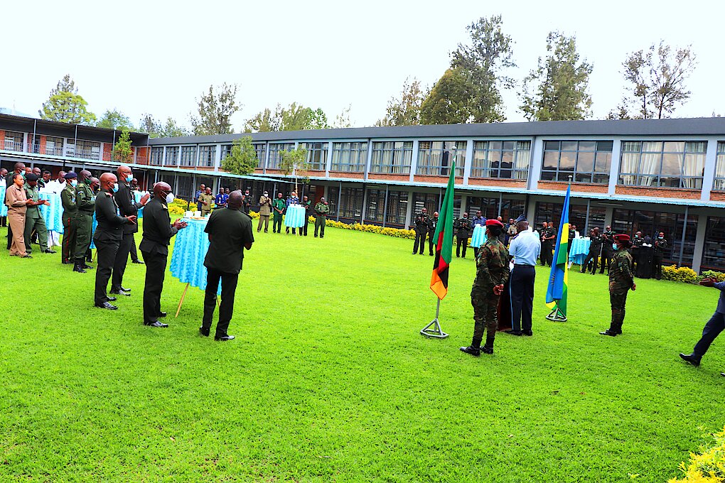 On 25 October 2021, the RDFCSC fraternity joined two students from the Zambia Defence Force (ZDF) to celebrate the Independence of the Republic of Zambia. The 2 senior officers are Lt Col Lt Col Webster MUTALE and Maj Bervyn GONDWE who are attending Senior Command and Staff Course (SCSC 10) as part of the exchange programme between the 2 sister Armies.