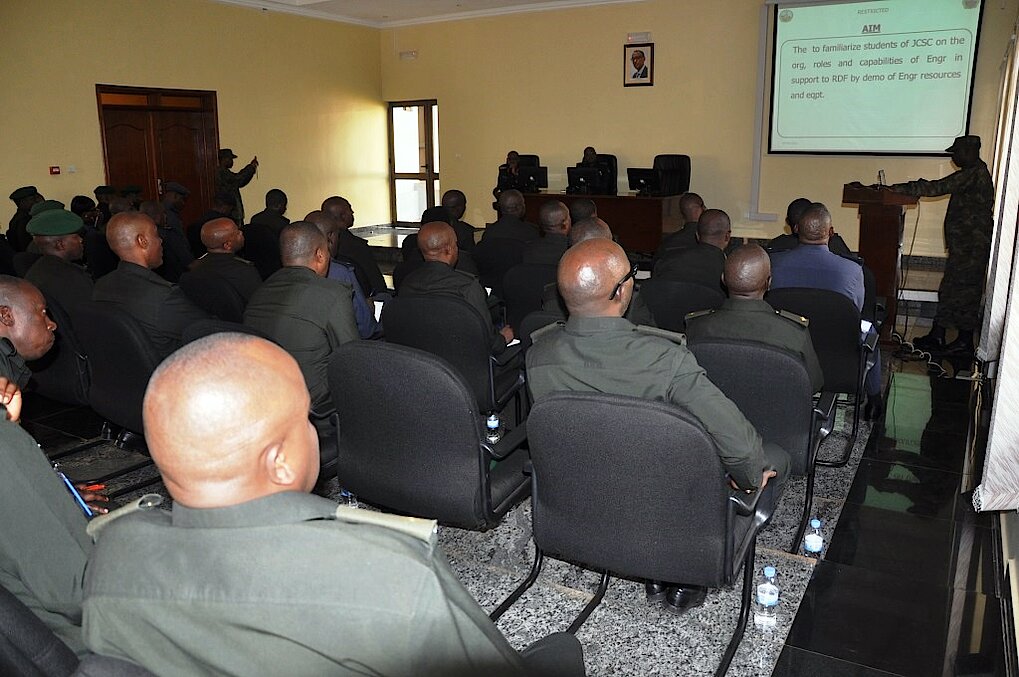 In continuation with the learning process in the RDFCSC, Students of JCSC 08, accompanied by their Directing Staff, made a visit to Rwanda Air Force Base and Combat Support Arms (Mech Div, Arty Div, and Engr Bde) on 7 September 2016