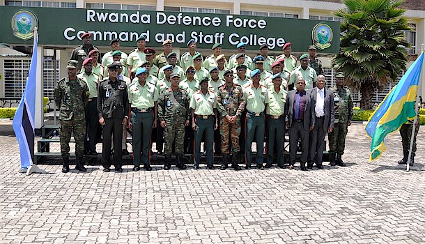 A delegation comprises of 34 Students Officers, from Botswana conducted a Geo Strategic Study Tours in Rwanda from 22 to 29 September 2018 for the purpose of exposing their students as well as College Staff on what Rwanda is doing, to learn and share experience that can take both Botswana and Rwanda forward. As it was part of a week study tour to Rwanda, the faculty staff and student officers from Botswana Defence Force Command and Staff College led by Col Mompoloki Marks Nkgapha, visited Rwanda Defence Force Command and Staff College (RDFCSC) on 26 September 2018.