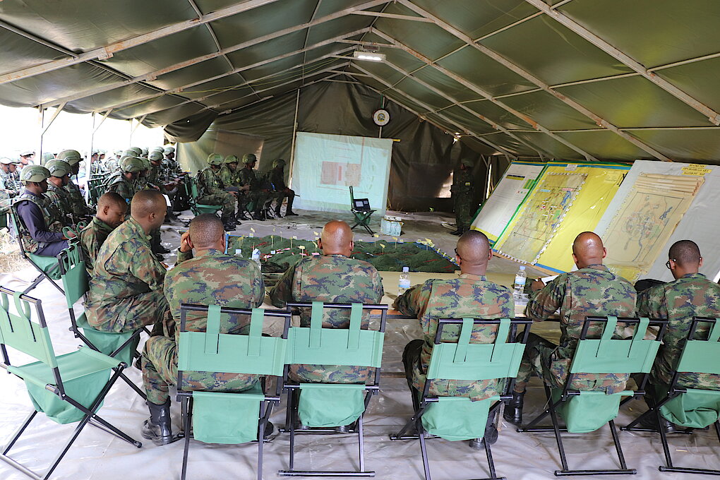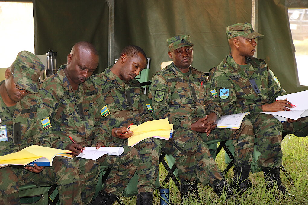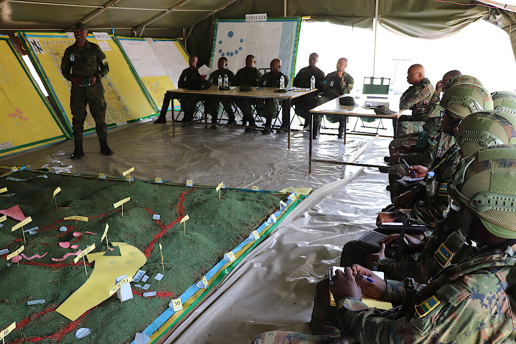 From 7 to 17 March 2023, the students of Junior Command and Staff Course 20 conducted a Field Training Exercise nicknamed SHAMBULIA ADUI. The Exercise was conducted in the general area of Gabiro, where students were exercised at Brigade level to a Company level. Ex-SHAMBULIA ADUI is a two-weeks Field Training Exercise conducted by students of Junior Command and Staff Course which is a one sided exercise with controlled enemy. It was designed to assess student officers in various aspects of leadership and C3 in the planning and conduct of operations of war.