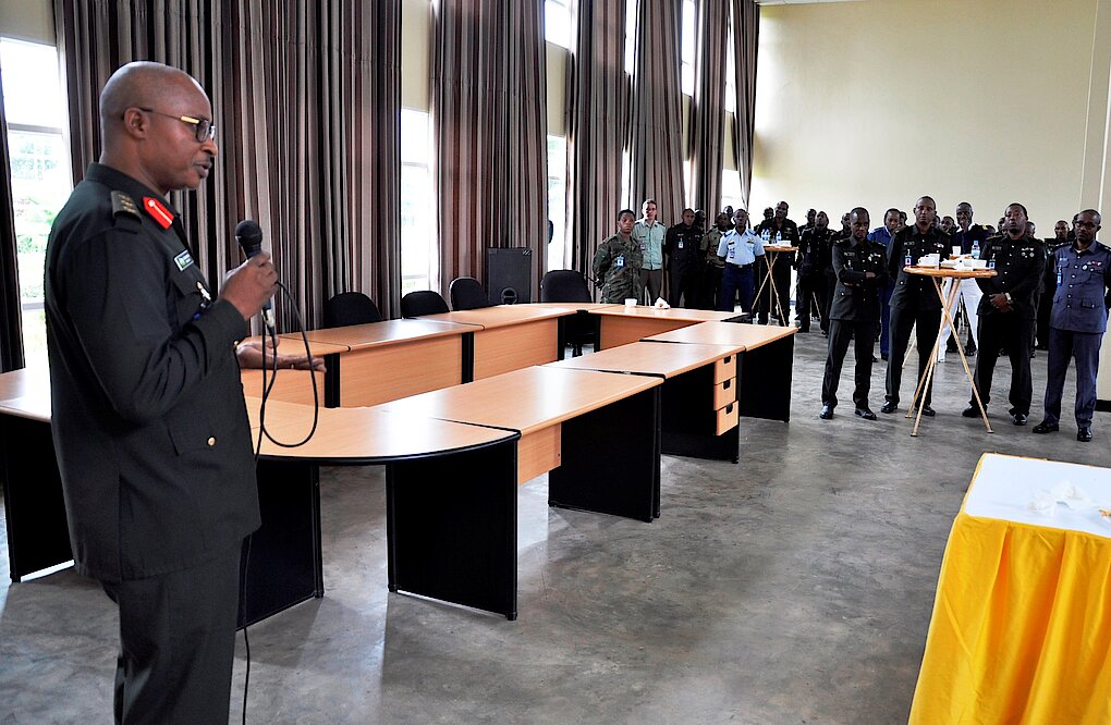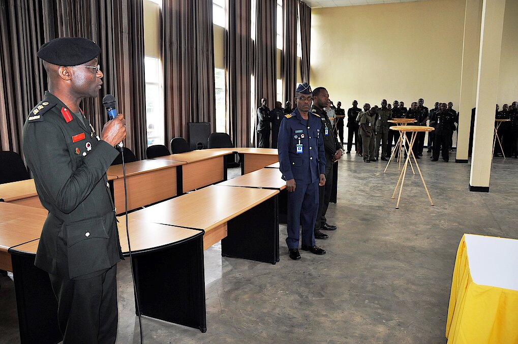 This was followed by solidarity message from Col W DZANDU – HEDIDOR, the Head of Research and Development and leader of the Ghana Military Assistance Training Team (GMAT) on behalf of the team in the College. Col W DZANDU-HEDIDOR, reiterated the clarion call for African unity by Dr Kwame Nkrumah, the first President of Ghana. He also touched on the cordial collaboration between Ghana and Rwanda and the East African Community at large, especially in the area of military training. He noted that the relationship between Ghana and Rwanda dates as far back as the period of the genocide against the Tutsi, when the Ghanaian contingent remained to help stem the crisis after the unfortunate withdrawal of the UN forces. Col DZANDU-HEDIDOR thanked the College Leadership for joining Ghana on this memorable day, and the kind hospitality towards the GMAT.