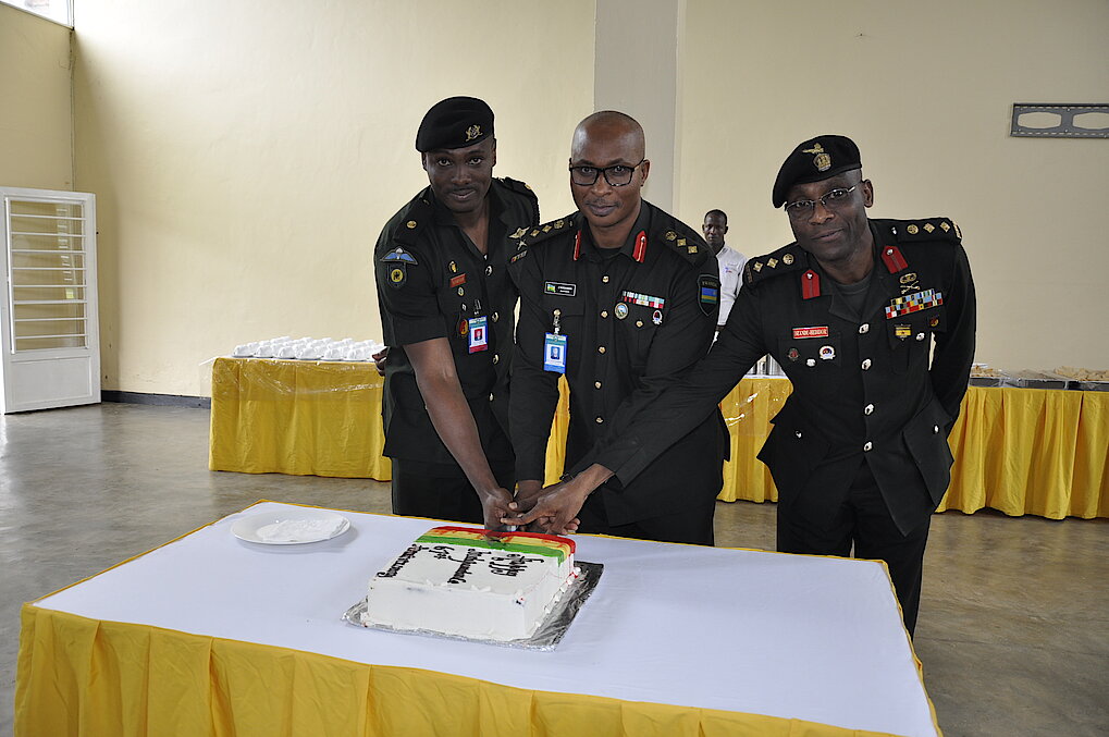 On behalf of the College entire fraternity, Col JC NGENDAHIMANA the Chief Instructor (CI), congratulated the Ghana senior officers currently at the College: Col W DZANDU-HEDIDOR, Head of Research and Development, Lt Col H K NDITSI, CDR DKA EGHAN and WG CDR R DANSO, Directing Staff, and Maj DK KORSAH, student., “We are happy to join you on this memorable day when Ghana is celebrating 61 years of independence. An African nation’s independence reflects the independence of the whole of Africa”, the CI noted. “It is also time to reflect on our achievements so far despite the challenges posed by neocolonialism and external interferences. More importantly, it is a time to pledge more unity, cohesion and integration in Africa”. He concluded by wishing the Ghanaian officers in particular and other officers at the College in general, happy celebrations and many more anniversaries of the kind.