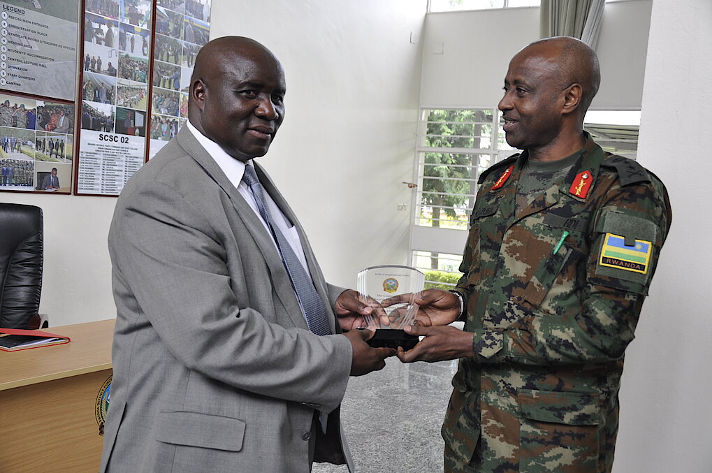 A delegation of five Senior Officials from Malawi Defence Forces (MDF) led by Lt Gen VT Nundwe, the Deputy Chief of Defence Forces, visited RDFCSC on 11 January 2018. The visit was part of the tour to Rwanda from 9 to 12 January 2018, aimed at exchanging best practices between MDF and Rwanda Defence Force (RDF).