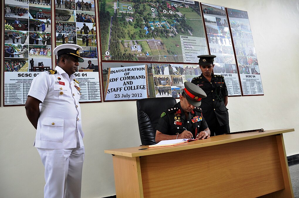 A delegation of 16 officers, comprising students and faculty members from the Sri Lanka Defence Services Command and Staff College led by Col GMCKB Ekanayake visited Rwanda Defence Force Command and Staff College (RDFCSC) on 16 August 2017. The visit was part of a two weeks study tour to Rwanda from 9 to 22 August 2017, aiming at learning about peace and security, and the tremendous socio-economic development of Rwanda.