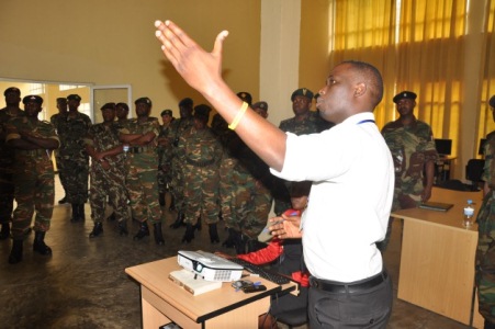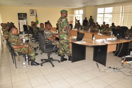 After a courtesy call to the Commandant, they were given a brief by the Chief Instructor Lt Col Jeanot Ruhunga on how the College executes its mission and the training support facilities the College has.