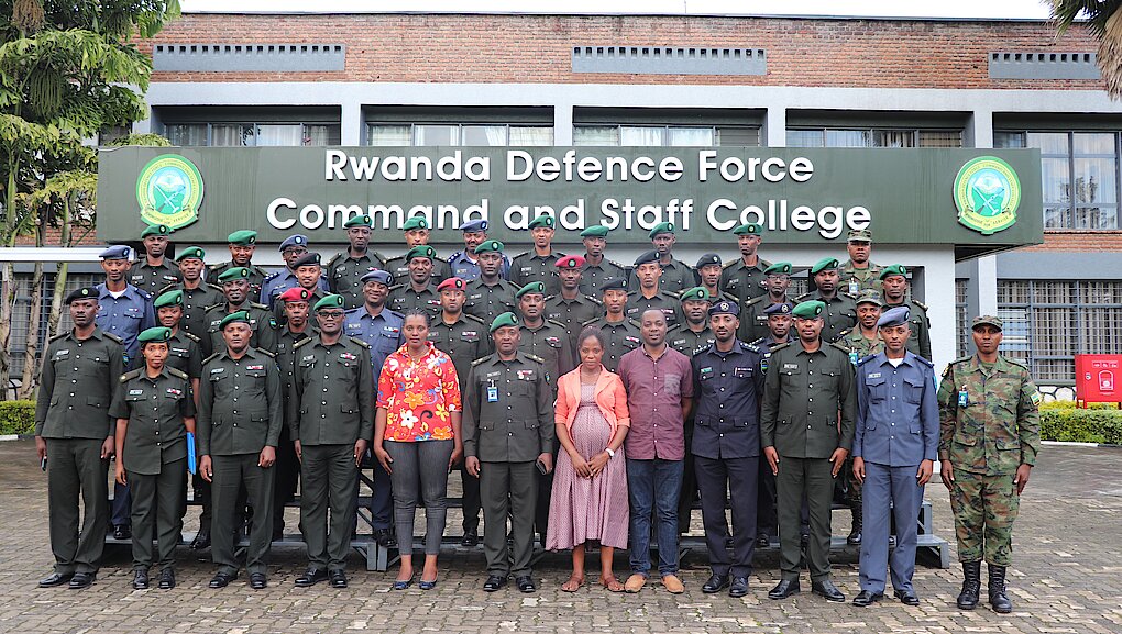 JCSC is a five months command and staff course conducted in RDFCSC with the aim of equipping the course students with the ability to perform command responsibilities at tactical level and a Grade 3 Staff duties at operational level effectively. The JCSC intake 20 comprised of 36 RDF officers in the ranks of majors and captains, including 2 female officers, and 2 Rwanda National Police officers: making a total of 38 students.