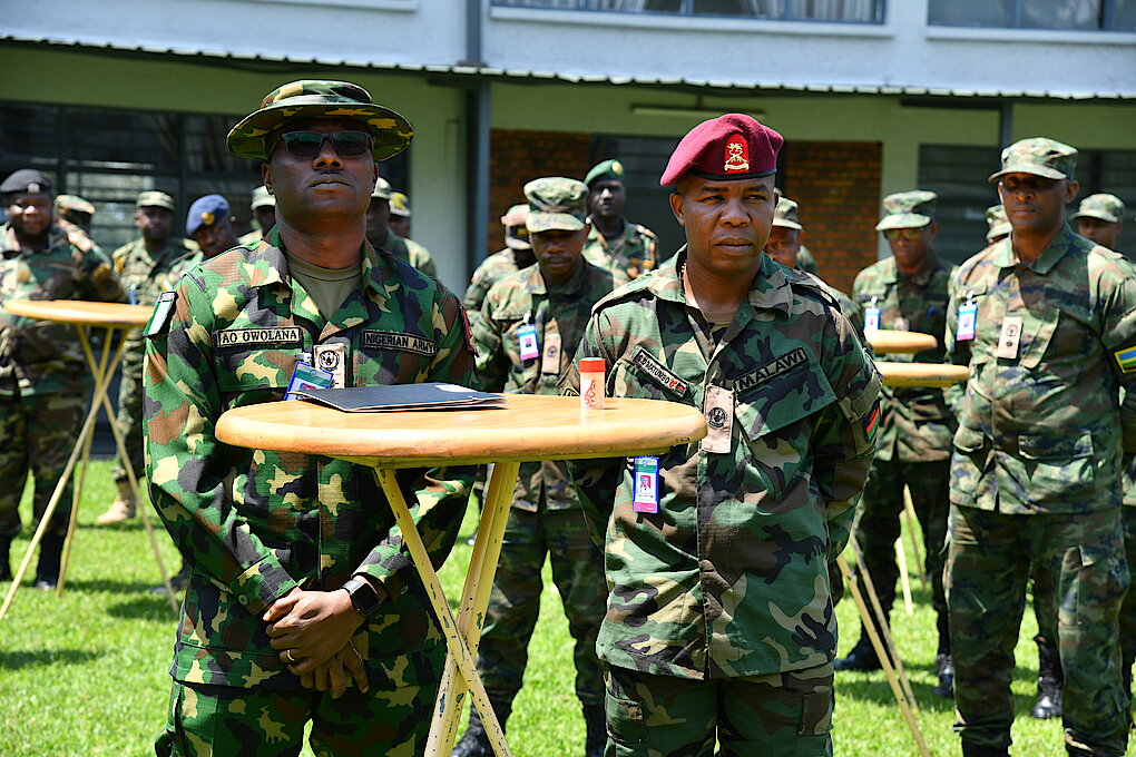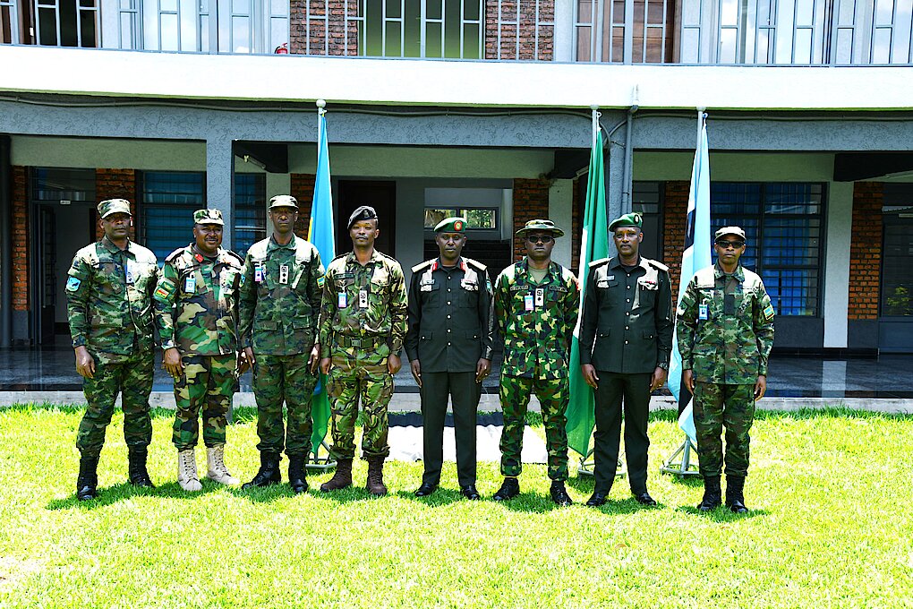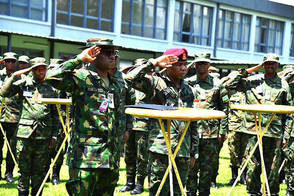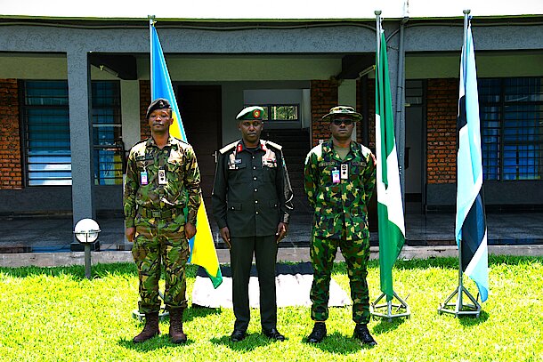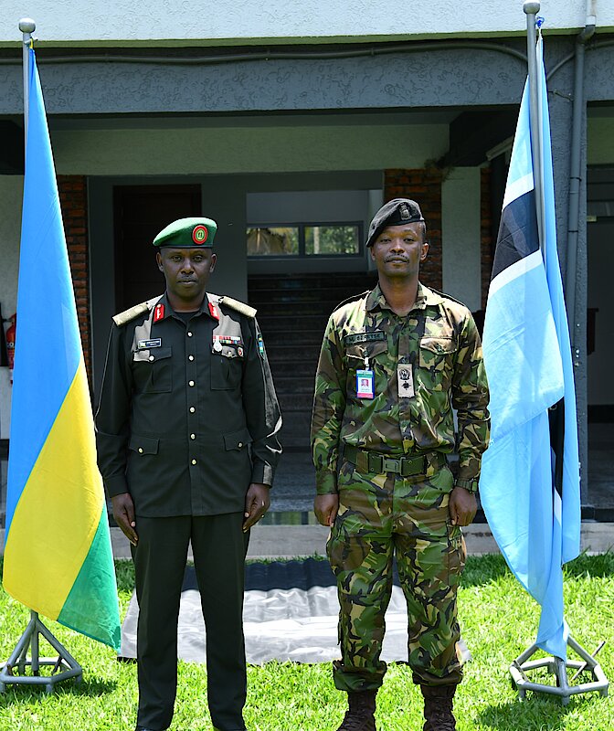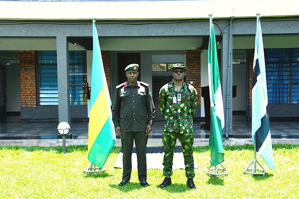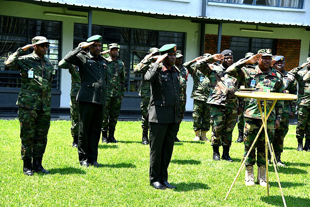 Brig General A. NYAMVUMBA, the faculty members, and RDFSCSC 12 showed their respect for the National Anthem by honoring the flags of both Countries