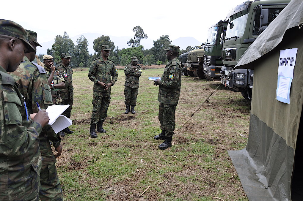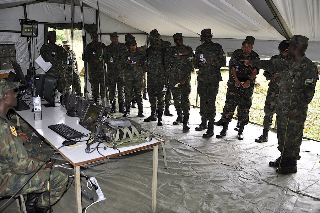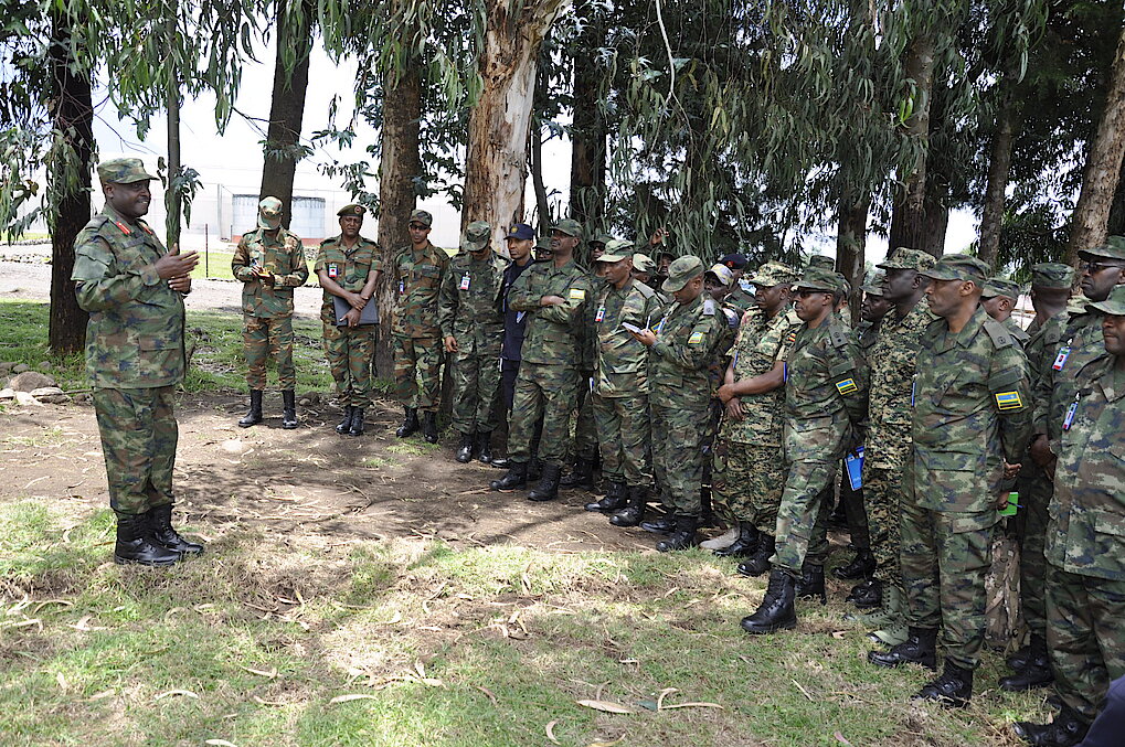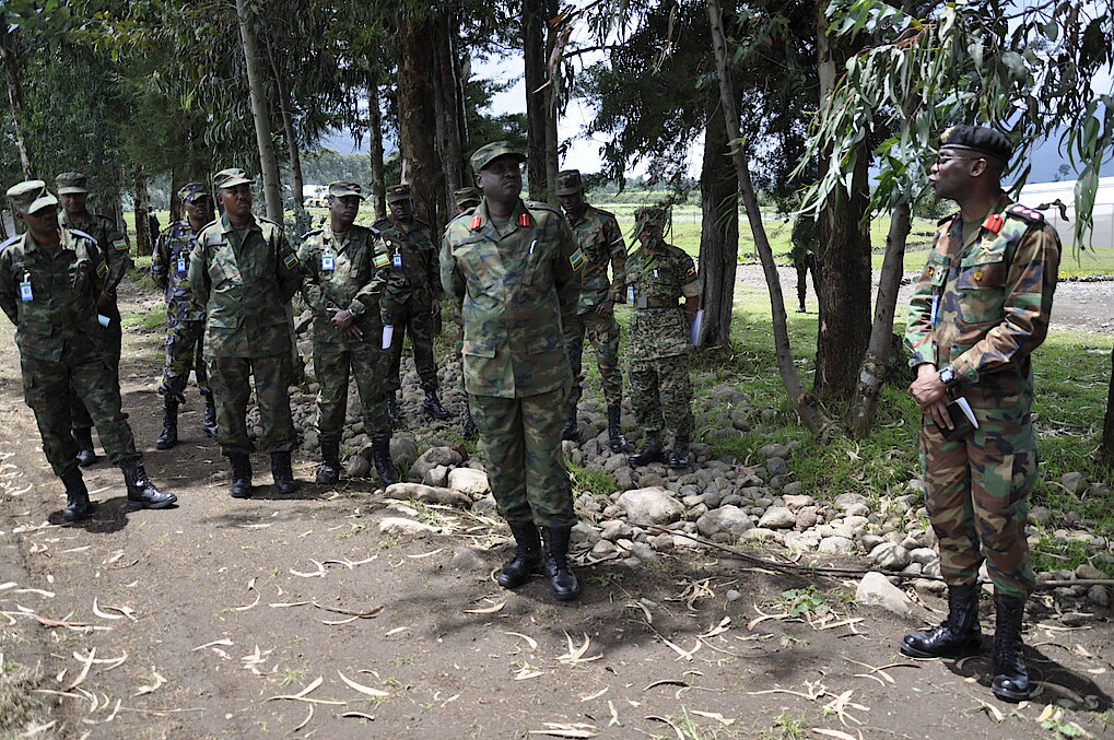 On Friday 14 September 2018 from 0800 to 1300 Hours, students of the Senior Command and Staff Course (SCSC) 07 accompanied by Rwanda Defence Force Command and Staff College (RDFCSC) faculty, visited 305 Brigade Tactical Headquarters in the field in Kinigi to physically see the layout and responsibilities of various elements of a Bde HQ in the field.