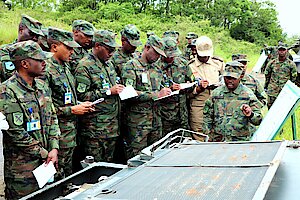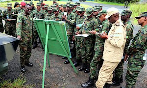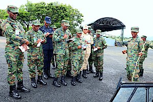 As a continuation of the learning process in the Rwanda Defence Force Command and Staff College (RDFCSC), on 24 November 2023, Students of Junior Command and Staff Course (JCSC) 22 accompanied by members of the Directing Staff (DS), visited RDF Combat Support Arms (CSA) including Mechanized Division, Artillery Division, Engineering Brigade and Air Force.