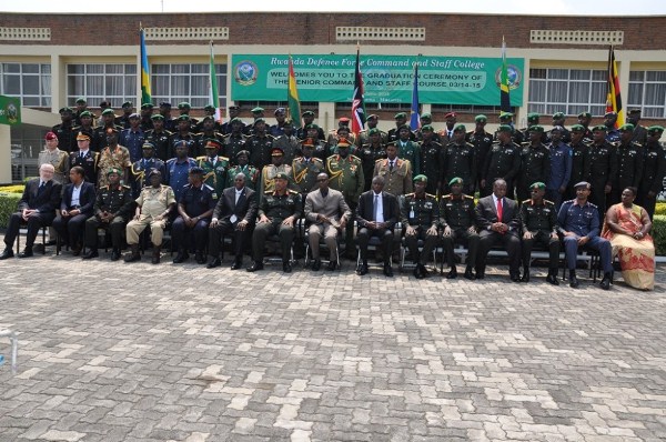 The Minister of Defence, General James Kabarebe, on behalf of H.E The President of the Republic and Commander-In-Chief of Rwanda Defence Force, presided over the Graduation Ceremony of the third intake of Senior Command and Staff Course at RDF Command and Staff College, in college premises, in Nyakinama-Musanze, on 5 June 2015. The course was composed of 47 Senior Officers, 2 each from Burundi, South Sudan, Tanzania, and Uganda, 37 from RDF, and 2 from Rwanda National Police. They all successfully completed a one-year course and received Passed Staff Course (PSC) Symbol, certificates and awards.