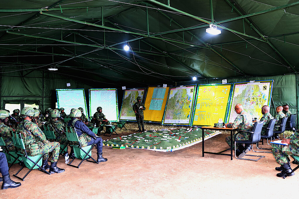 Ex SHAMBULIA ADUI was a final Field Tactical Exercise (FTX) conducted by students of JCSC 22. It was a one-sided exercise with a controlled enemy and designed to assess student officers in various aspects of planning and conduct of operations of war. The exercise was conducted in the general area of GABIRO (Eastern Province), from 6 to 15 March 2024.