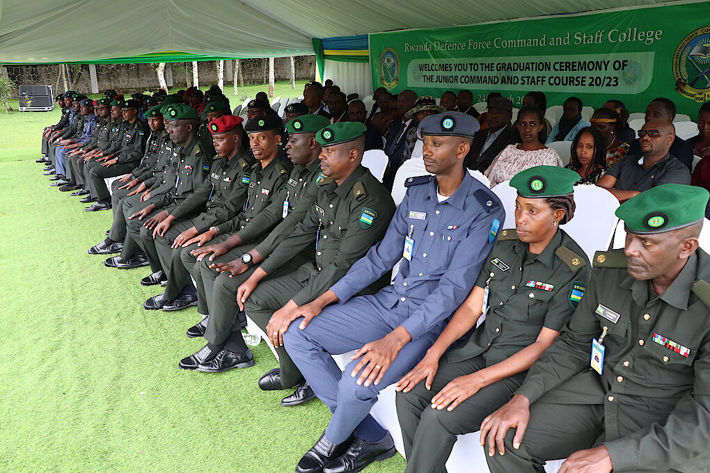 On 24 March 2023, thirty-six officers of the ranks of Major and Captain, including 2 female officers, of the Rwanda Defence Force (RDF) and two officers of the rank of Chief Inspector of Police (RNP) successfully completed a Junior Command and Staff Course Intake Twenty (20/23). The ceremony took place at the RDF Command and Staff College in Nyakinama, Musanze District. The Rwanda Defence Force (RDF) Army Chief of Staff, Lt Gen M Mubarakh presided over the graduation ceremony.