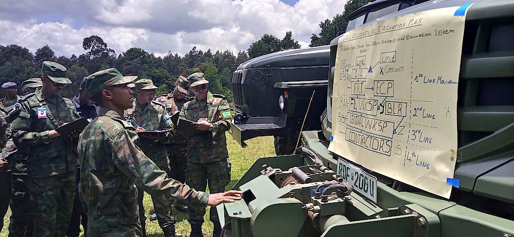 During the visit, various Brigade Combat Support, and Combat Service Support (CSS) elements demonstrated and presented on their functions, roles and responsibilities to enable the Brigade fulfill its mission. Emphasis was put on the support provided by CSS units within the Brigade Admin Area (BAA).