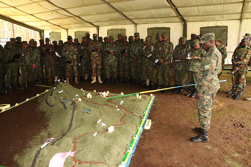 On Monday 26 September 2022 from 0800 to 1300 Hours, students of Senior Command and Staff Course 11 accompanied by the Deputy Commandant Col JC Ngendahimana and the faculty members visited 503 Brigade Tactical Headquarters in Kinigi, Musanze district. The visit was conducted in order to expose students on the layout and responsibilities of various elements of a Bde HQ in the field.