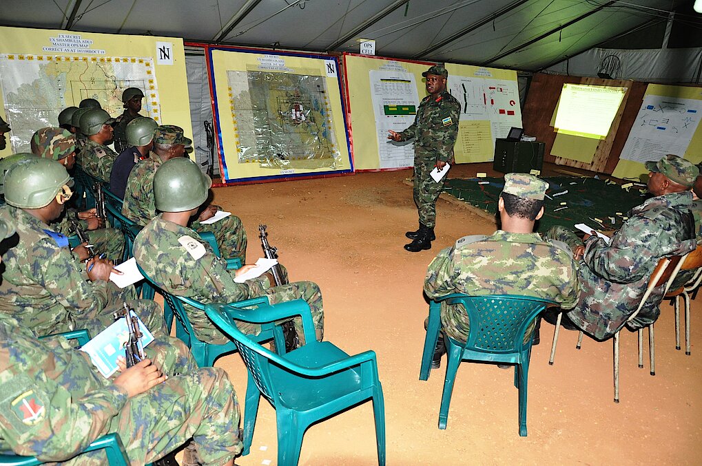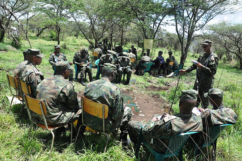 SHAMBULIA ADUI is a week Field Training Exercise conducted by students of Junior Command and Staff Course 11 and it was one sided exercise with a controlled enemy designed to assess student officers in various aspects of leadership and Command, control and communication in the planning and conduct of operations of war.