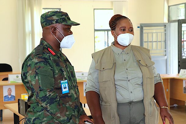 The Malawi Deputy Minister of Defence, Hon. Jean Muonaowauza SENDEZA and her delegation including the Commander of Malawi Defence Forces Gen Vincent NUNDWE visited RDFCSC on 13 October 2021 and was conducted to a guided tour around the College. The delegation was also accompanied by the RDF Chief of Defence Staff (CDS) General Jean Bosco KAZURA. General NUNDWE briefly addressed the students of Senior Command and Staff Course 10 and urged the students to make good use of the conducive learning environment and acquire the necessary ideals that are central to uniformed service.