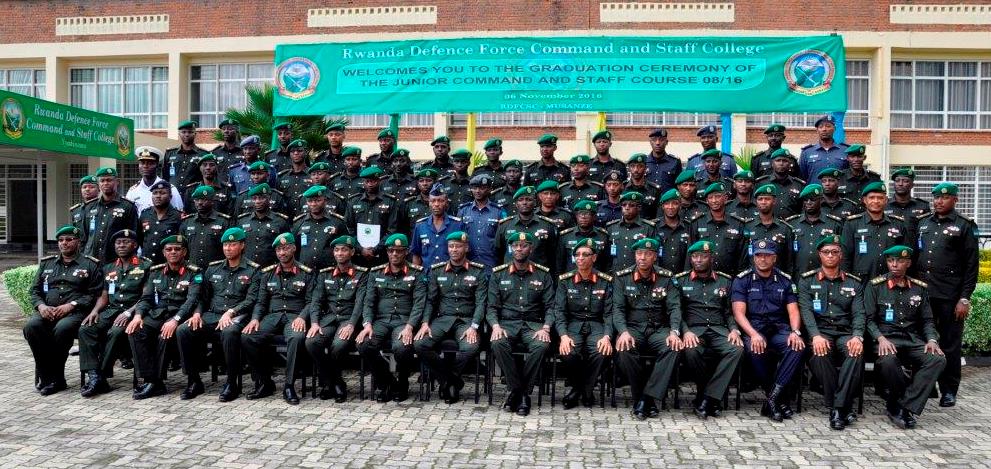35 officers, including 33 from the Rwanda Defence Force and 2 from the Rwanda National Police, graduated from the Junior Command and Staff Course (JCSC/08) at RDF Command and Staff College, in Musanze District, on 6 November 2016. The graduation ceremony was presided over by the Army Chief of Staff (ACOS), Maj Gen Jacques Musemakweli, on behalf of the RDF Chief of Defence Staff.