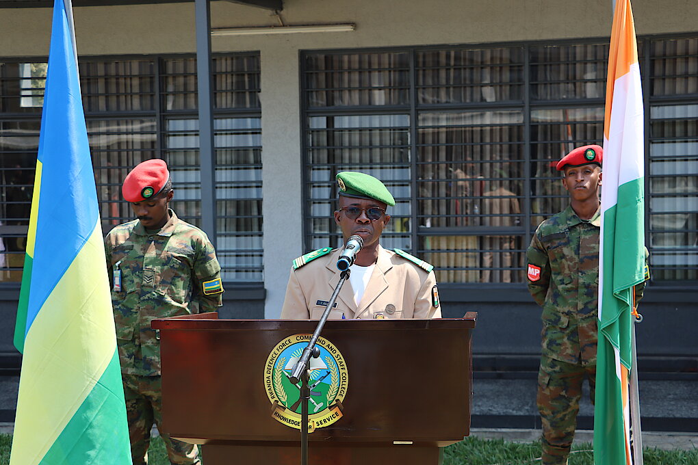 The Deputy Commandant & Chief Instructor, Brig Gen Jean Chrysostome NGENDAHIMANA spoke on behalf of the Commandant and the College fraternity. He wished the people of Niger, particularly Maj Abdou IBRAHIM who is the first Nigerien student at the College, a very Happy Independence Day. The Deputy Commandant & Chief Instructor lauded the friendship, partnership, and cooperation between the two sister republics of Rwanda and Niger in many aspects. He said the kind of cooperation that serves common interests, was what Africa needed to enjoy to the fullest the fruits of its independence from colonialism and neo-colonialism.