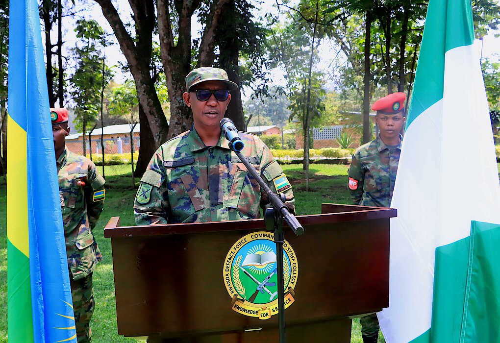 The occasion was presided over by the Head of Professional Courses, Col Corneille Emile NKUNDIMANA, on behalf of the entire college fraternity. He congratulated the Nigerians on their 64 years of independence and noted: "'It is with great pride and a profound sense of honour that I stand before you, on behalf of the Commandant who is unable to be with us today, to commemorate Nigeria's 64th Independence Day. This occasion not only marks a significant milestone in Nigeria's history but also serves as a reminder of the enduring spirit of resilience and unity that defines the Nigerian people. We also reflect on the values that bind us as Africans and citizens of a global village—values of respect, tolerance, and mutual support. Let us continue to work together towards a brighter future for our nations, fostering peace and stability in our regions. Once again, I extend my heartfelt congratulations to our esteemed Nigerian colleague, Sqn Ldr Ademola, on this significant occasion, and wish you a joyful Independence Day!"