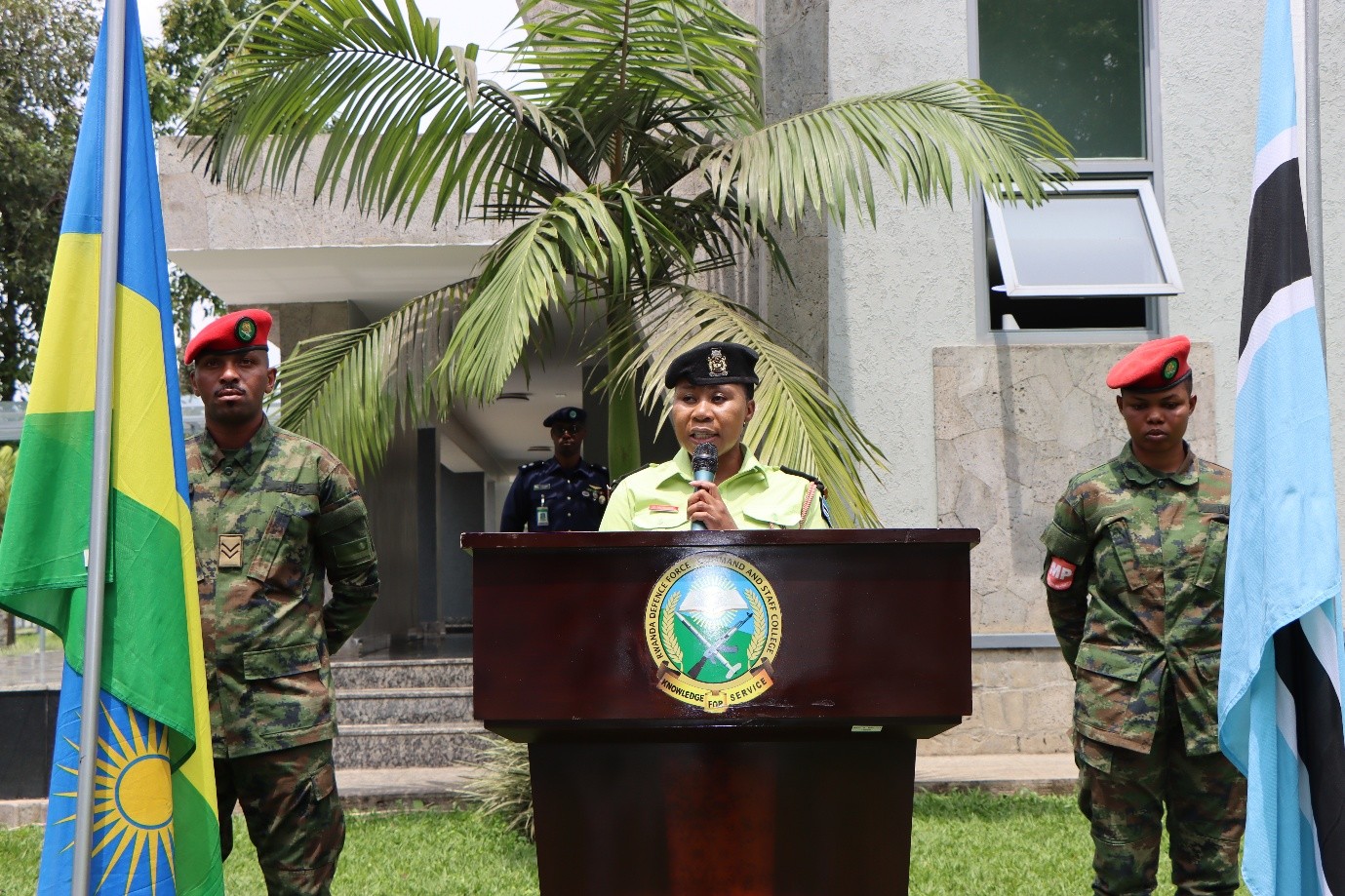 The Botswana student, Maj Precious MOKGOSI, addressed the gathering, expressing her honor by celebrating a significant milestone in African history with the college community. She said “today, I am deeply honoured to join the College community in celebrating Botswana’s 59th Independence Anniversary, a moment of pride not only for me, but for our nation and the world at large. Like many African countries, Botswana emerged from colonial rule, having been a British Protectorate for 80 years. In conclusion, as we celebrate this momentous occasion, may we honor the legacy of those who came before us and remain steadfast in our mission to build a better future for Africa as a whole. May God bless Africa, may God bless Rwanda, and may God bless Botswana! PULA! PULA! PULA!”