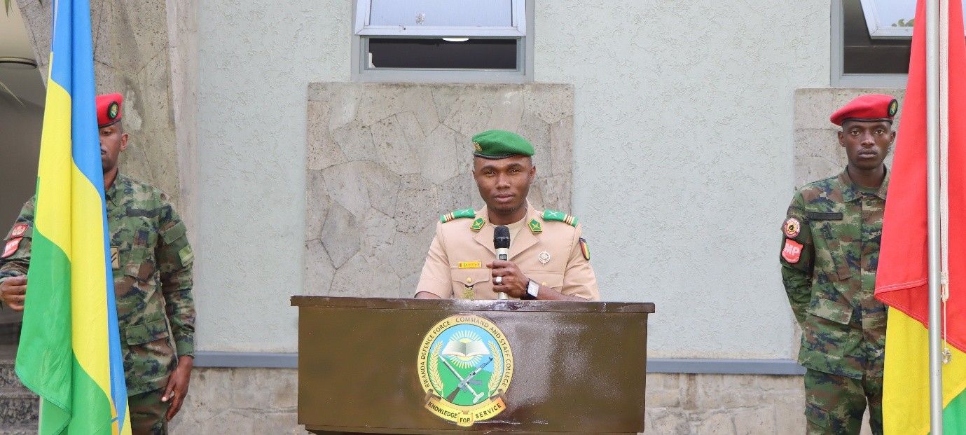 The occasion was graced by the College Commandant Brig Gen A NYAMVUMBA. He said, “it is with great honor today as we gather here to celebrate, alongside our comrade Maj Mory Kaita, the independence day of his homeland, the Republic of Guinea. On behalf of this college, I extend our deepest congratulations to the people of Guinea and particularly to you Maj Mory Kaita. At this institution, we hold a profound respect for the sovereignty of every nation represented here. Celebrating these milestones is a cherished tradition, one that reinforces our shared commitment to peace, self-determination, and the bonds of international fellowship. The bonds between Rwanda and Guinea are rooted in our common destiny as African nations. We are therefore particularly privileged to host Maj Mory KAITA and to contribute to his professional growth. His presence here strengthens the ties between our armed forces and fosters a deeper, and more collaborative spirit across our continent in defence cooperation. Once again, to our esteemed colleague and brother, maj Mory KAITA, we offer our sincerest felicitations. Happy Independence Day to you and to the Great nation of Guinea.”