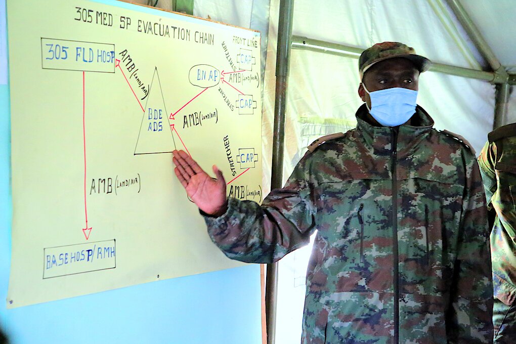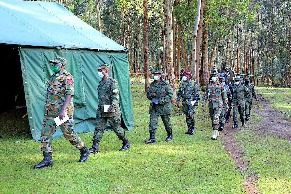 On Monday 27 September 2021, faculty and students of the Senior Command and Staff Course (SCSC 10) visited 305 Brigade Tactical Headquarters in Kinigi. The exercise provided the students an opportunity to see the actual layout of a brigade in the field and appreciate responsibilities of various elements in a Bde Tac HQ.