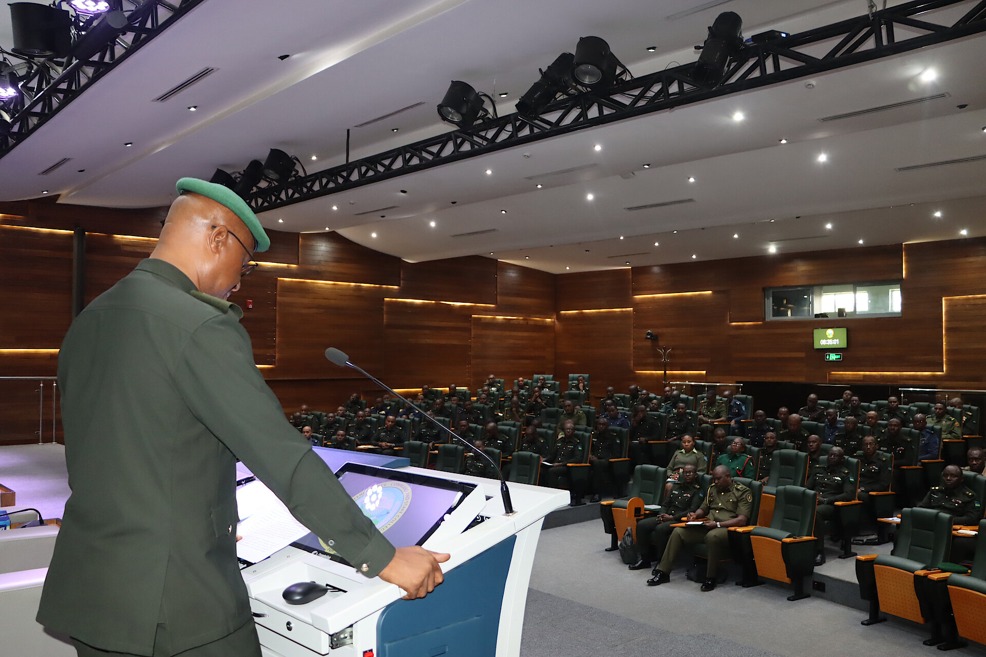 Col E RUKUNDO, Course Coordinator of the Senior Command and Staff Course giving his brief.
