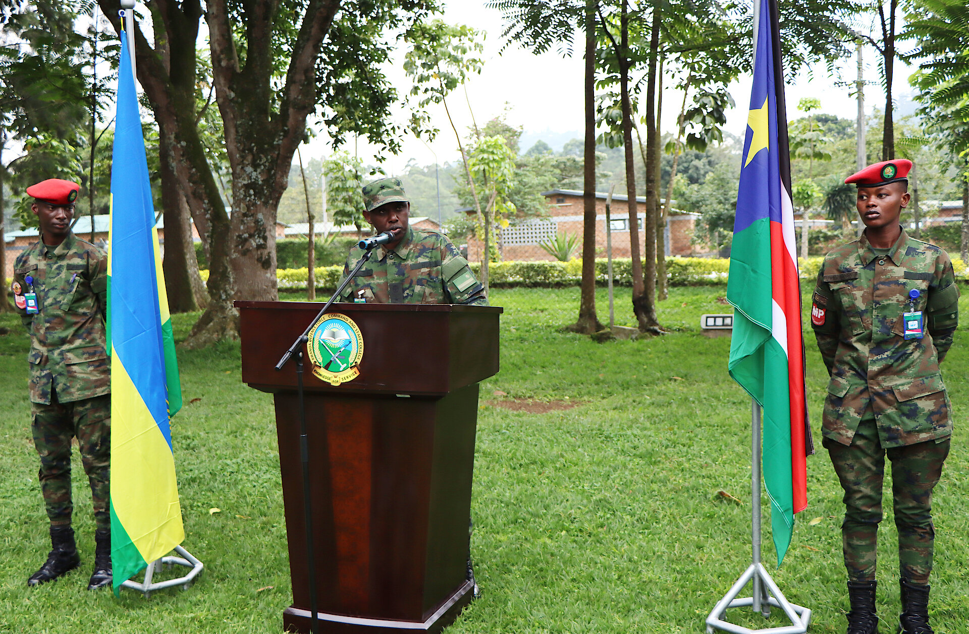 On behalf of the College's entire fraternity, the Commandant, Brig Gen Andrew Nyamvumba, remarked: “it is an honour to share this moment with our South Sudanese brothers, Lt Col Kiir Aluetmiir and Maj Alier William Magot, who are with us as prospective students of Senior Command and Staff Course intake 14. On behalf of the entire College community, we extend our heartfelt congratulations to you and the people of South Sudan. Your country’s path to independence is a powerful success story of courage, resilience, and unity – values that continue to inspire all of us.