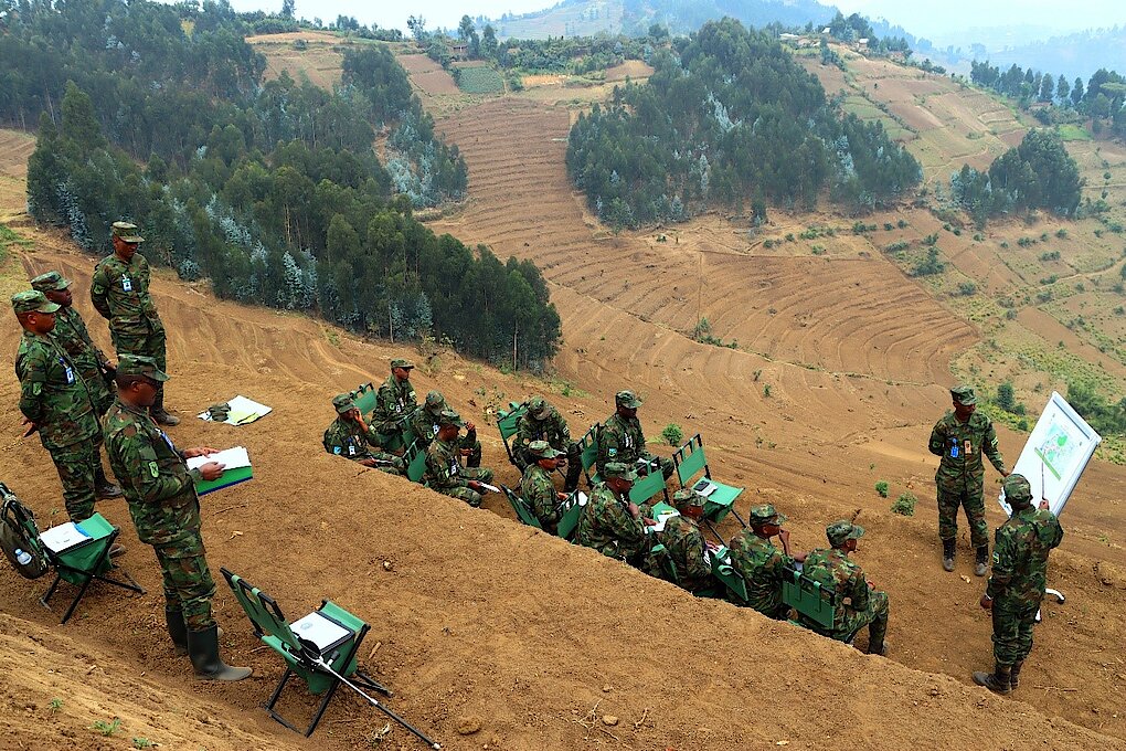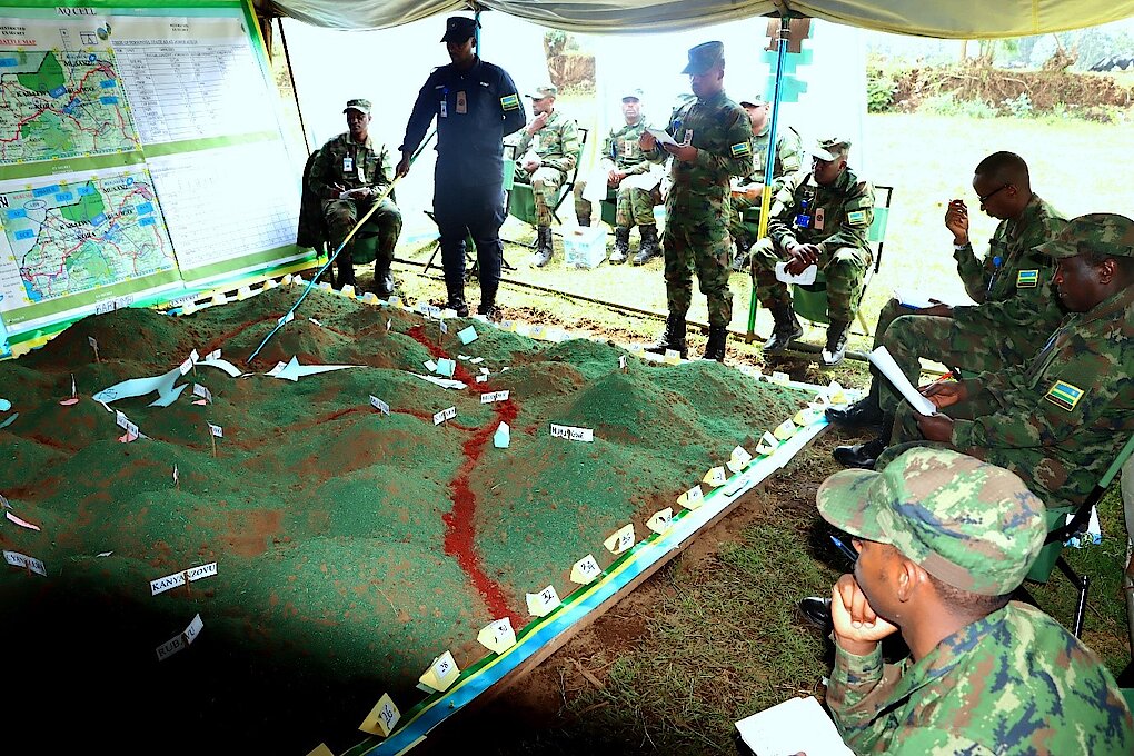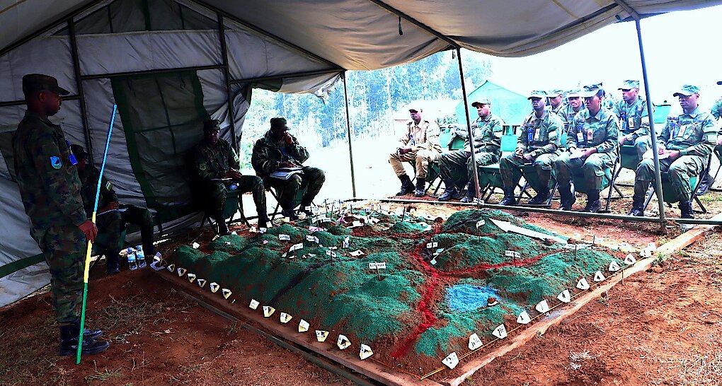 Junior Command and Staff Course (JCSC) 23 students conducted various outdoor exercises from 25th of July to 14th of August 2024. These exercises included Defensive Tactical Exercise without Troops (TEWTs) code-named RINDA INKIKO, which took place from 25th to 31st July 2024 in the gen area of MUKAMIRA. Subsequently, JCSC 23 also went on to conduct Offensive Operations TEWTs nicknamed NESHA UMWANZI from 8th to 14th August 2024 in the gen area of KANZENZE. The 2 exercises aimed at practicing students of JCSC 23 on the planning and conduct of both defensive and offensive operations at Bde level of comd.