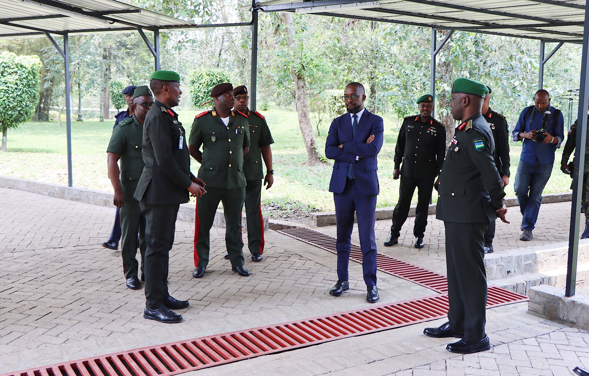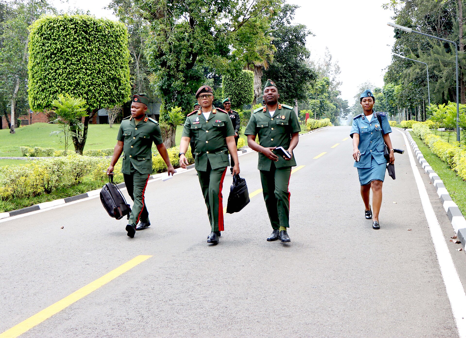 After the tour, the delegation joined Brig Gen A. Nyamvumba for a group photo session to commemorate the visit. As a mark of respect and appreciation, Honourable Minister Maj Gen Cristóvão Artur Chume signed in the RDFCSC visitors' book and exchanged gifts of appreciation with the Commandant. Afterwards, they proceeded to a luncheon.