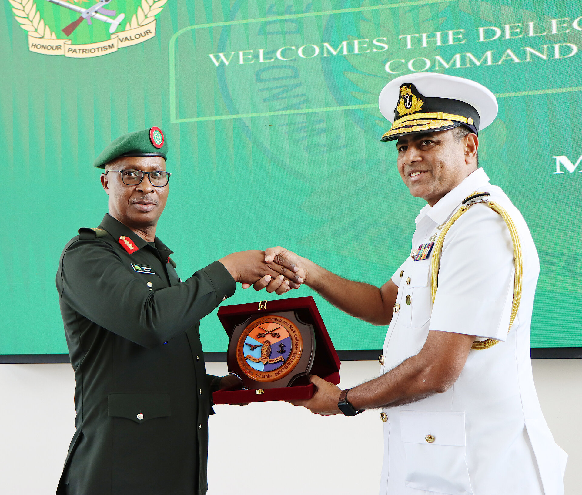 In his speech, he said, “On behalf of the Commandant who is outside of the College on official duties, the entire RDFCSC fraternity, and indeed on my own behalf, it is our pleasure to welcome you Commodore Sir, and your delegation to RDFCSC. I also take this opportunity to thank you for once again choosing to visit our College 7 years after your last visit in Aug 2018. This is a strong indication that your College still keeps the desire benchmark and cooperates with our own College, and gets acquainted with our programmes, what we do, and what we envisage to do, so that we both continue to benefit from sharing our experiences, knowledge, and best practices. Your visit today is even more meaningful as it takes place in the aftermath of our College visit to Sri Lanka in February this year, where our students of SCSC 13 immensely benefited from the rich programme your Defence HQ had prepared for them. These continued exchanges and partnerships are indeed very much needed to enrich our respective students’ perspectives on many issues bordering on security and strategic studies.”